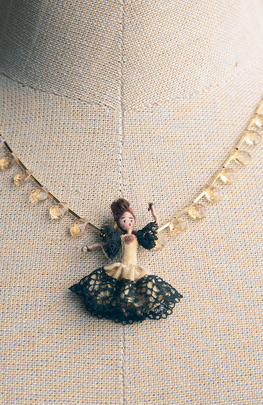 Miniature Spanish Dancer Doll on Citrine Necklace