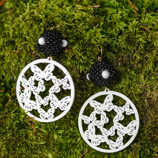 Black and White Handbeaded Butterfly Earrings