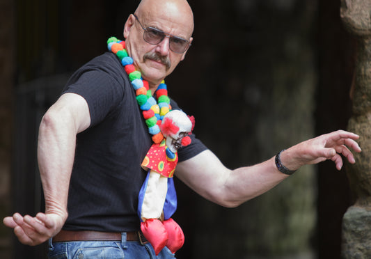 Enormous Festival Clown on Colourful Pom Pom Necklace