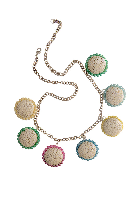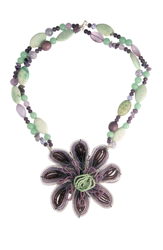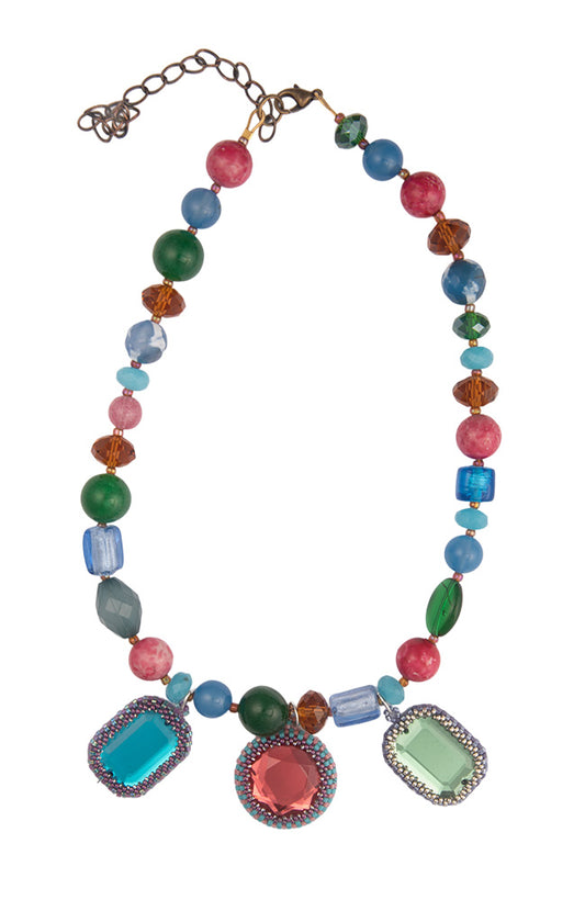 Green Pink And Blue Hand Beaded Shapes Necklace