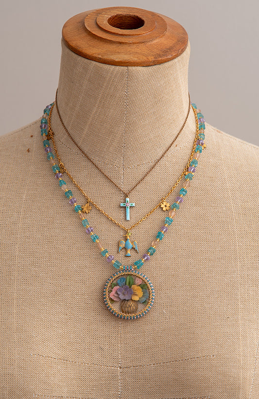 Travelling Domino Cross On Giant Cream Bead Necklace