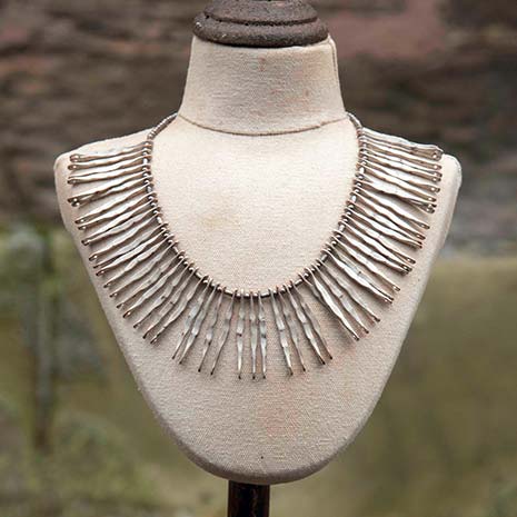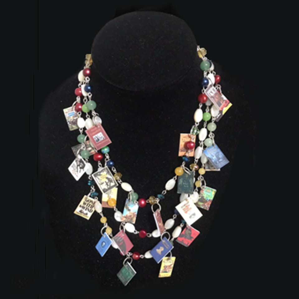 Lindsey created a light as air three tier silver necklace with miniature plays and novels attached like charms. These books included some that had special meaning for my sister. Result a very happy sister."